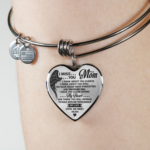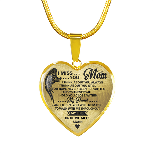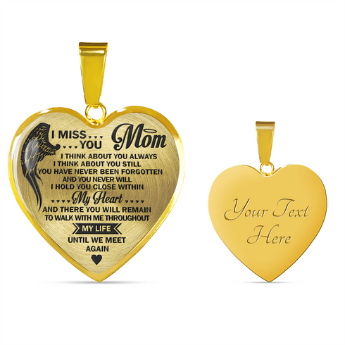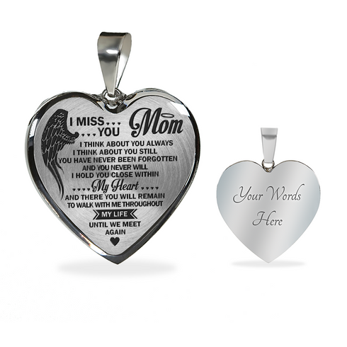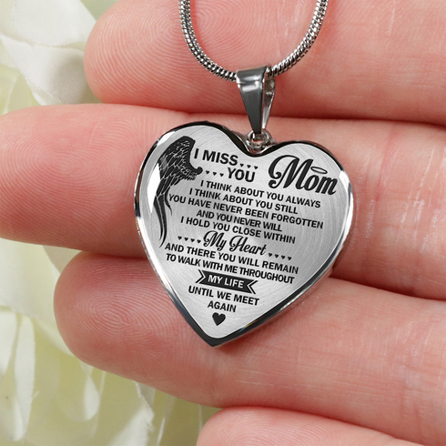 Necklace says: "I miss you Mom. I think about you always. I think about you still. You have never been forgotten and you never will. I hold you close within my heart...and there you will remain to walk with me throughout my life...until we met again."