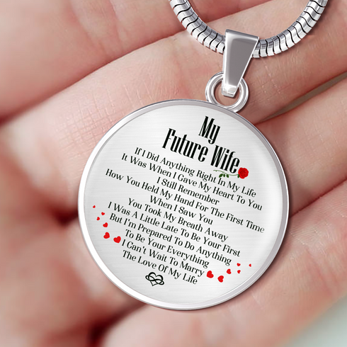 Necklace says: "My Future Wife... If I Did Anything Right In My Life, It Was When I Gave My Heart To You. I Still Remember How You Held My Hand For The First Time. When I Saw You, You Took My Breath Away. I Was A Little Late To Be Your First But I'm Prepared To Do Anything To Be Your Everything. I Can't Wait To Marry The Love Of My Life."