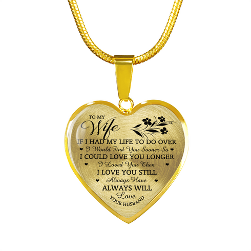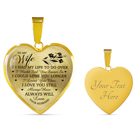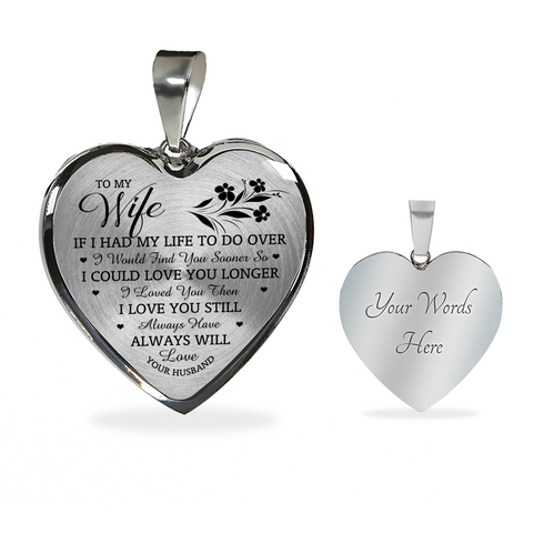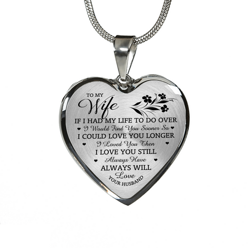 Necklace says: "To my wife. If I had my life to do over. I would find you sooner so I could love you longer. I loved you then. I love you still. Always have, Always will. Love, your husband."